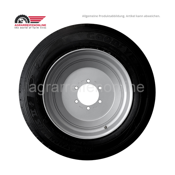 Gebrauchtreifen montiert auf neuer Felge. Der Reifen ist gebraucht, nachgeschnitten und technisch einwandfrei. Für landwirtschaftliche Anhänger und Tieflader geeignet. Abb. ähnlich.